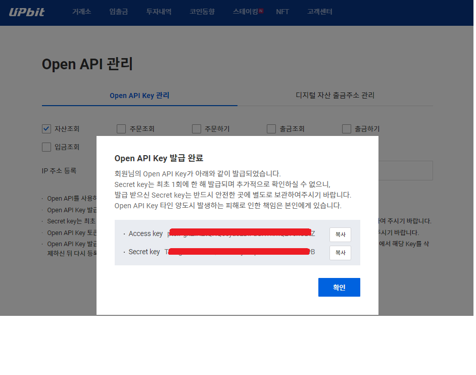 이상으로 업비트(Upbit) 사이트의 API 사용 등록과 Key 발급을 받는 방법을 알아보았습니다.