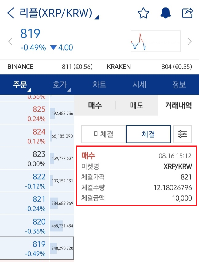 실제로 정상적으로 주문이 완료되면 거래내역에서