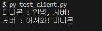 서버의 IP와 port를 기재하고 서버로 요청할 메시지를 보내고 응답 받는 것을 확인해보겠습니다.