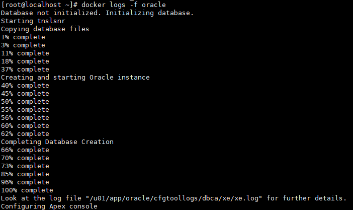 $ docker logs -f oracle
