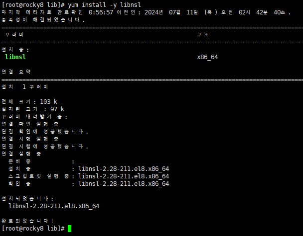 다양한 문제가 있지만 아마 "libnsl" 라이브러리가 설치되어 있지 않아 발생할 확률이 크다..