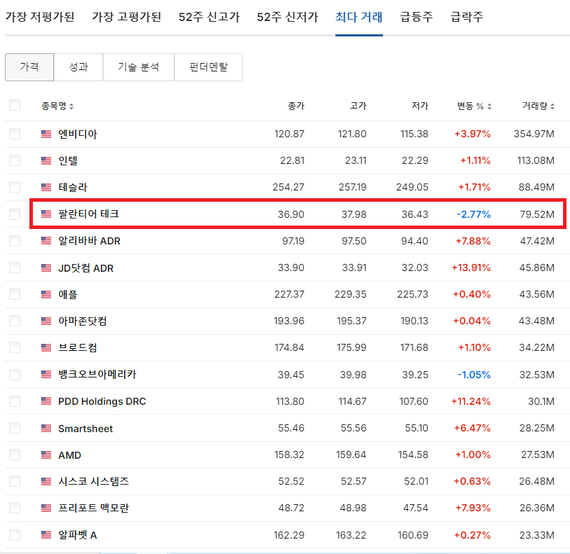너 낯설다..라는 얘기가 절로 나올 정도로 최근에 미국 기업 중 거래량 상위에 랭크되는 것이 자연스럽네요.