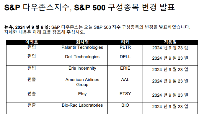 드디어 24년도 3분기 S&P 500 지수에 팔란티어 주식이 편입되었습니다....(ㅠㅠ 앞으로 더 비싸질 거 같네용)